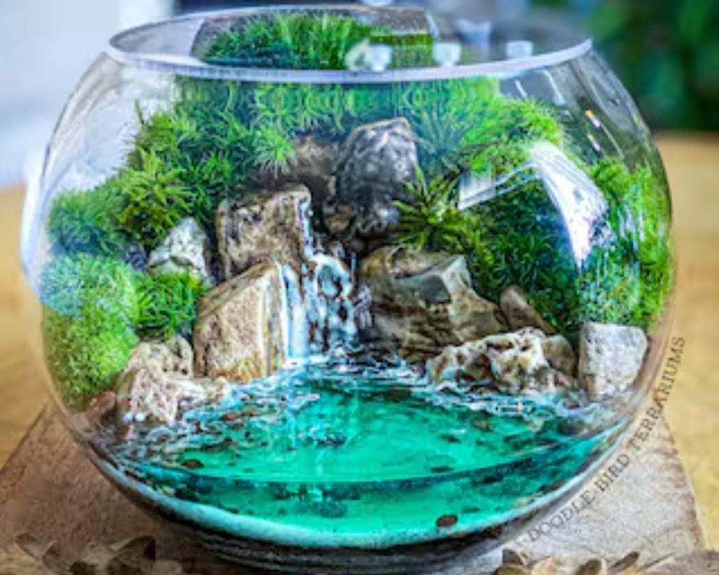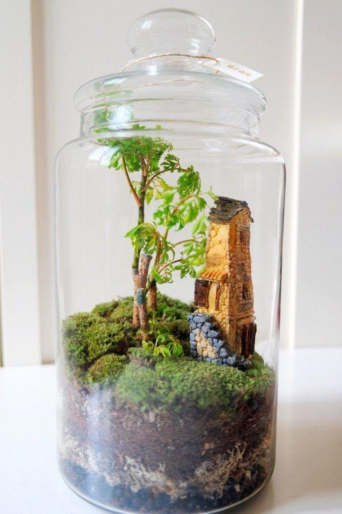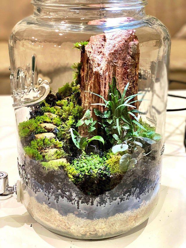 N.B. Далее я покажу вам несколько террариумов, мини-садиков, имитаций, сделанных из разных материалов, включая живой мох и ИИ иллюстраций.