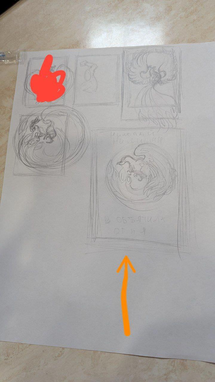 В прошедшее воскресенье встретился с художником. Долго обсуждали обложки и сделали несколько набросков. Остановились на варианте с жар-птицей, а также обговорили финальное название произведения.