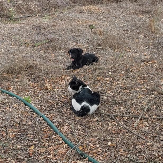 Я так понимаю, Ночь (слева) очень хочет закосить под лабрадорку, Муха (справа), скорее всего, вырастит в мелкое непоймичто.
