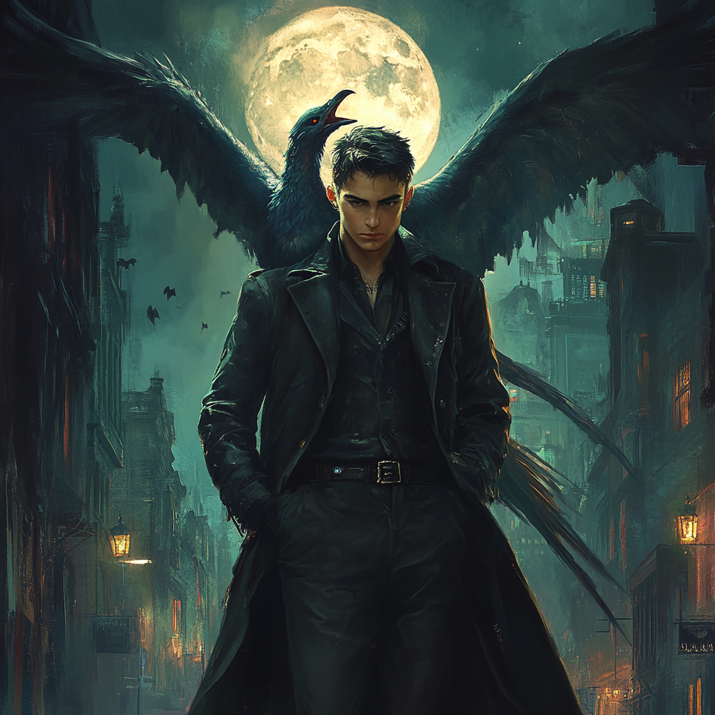 “…Денис — молодой человек, живущий в тени большого города. Парень ведет двойную жизнь: днем он обычный студент, а ночью превращается в охотника за древними тайнами. Парень выходит в темноту улиц и его верный помощник — огромная темная птица, служит ему проводником в мир магии и опасностей. Вместе они исследуют мрачные улицы и только полная луна освещает их путь, открывая секреты и загадки, которые могут изменить судьбу города навсегда…”
