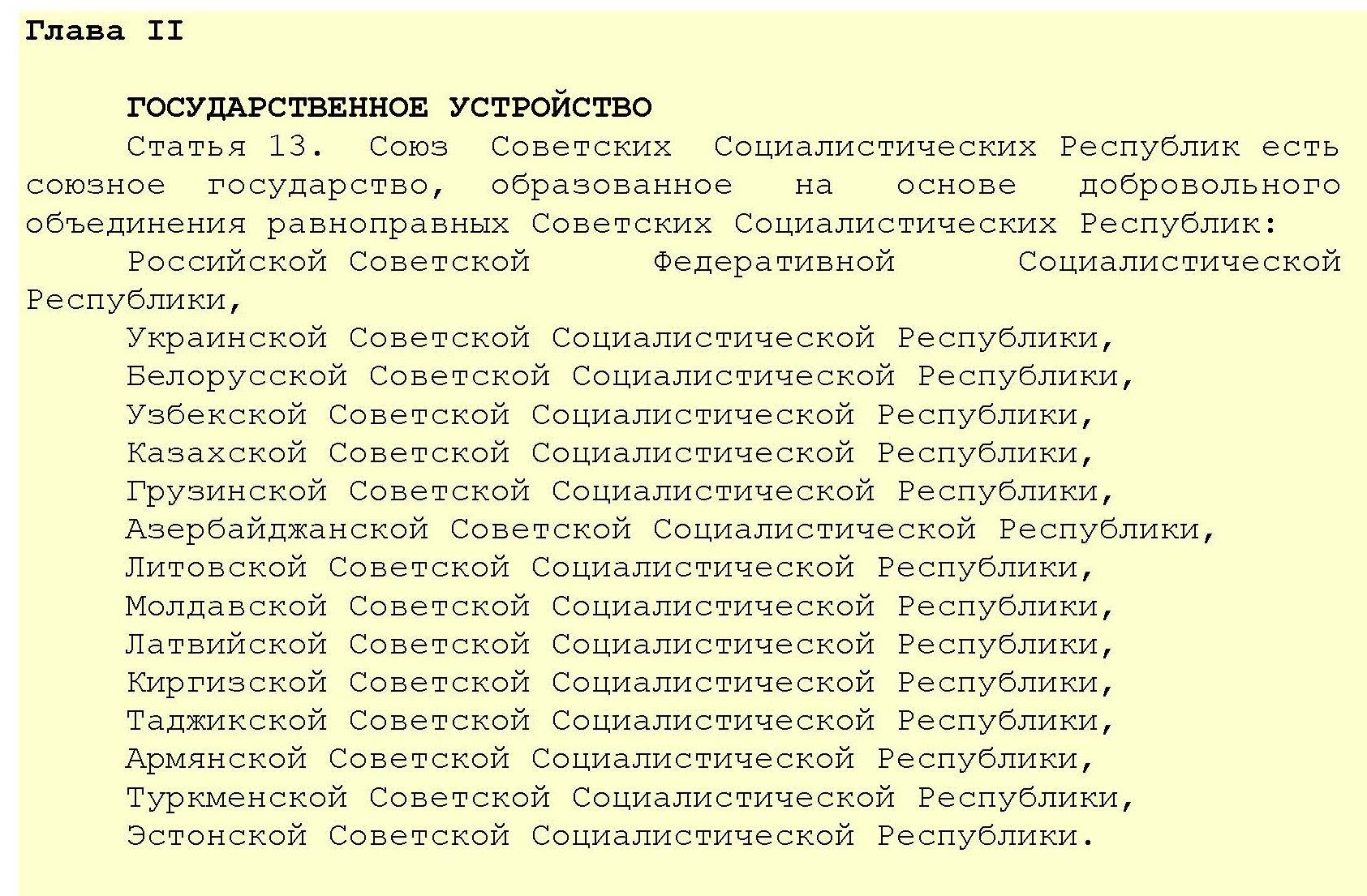 5 декабря 1936 г. VIII Чрезвычайный Съезд Советов принял новую Конституцию СССР. Новая конституция имела принципиально иную структуру, чем Конституция СССР 1924 г. Она состояла из 13 глав и 146 статей. По оценке партийно-государственного руководства страны, новый Основной закон закреплял «победу социализма и рабоче-крестьянской демократии» в СССР.