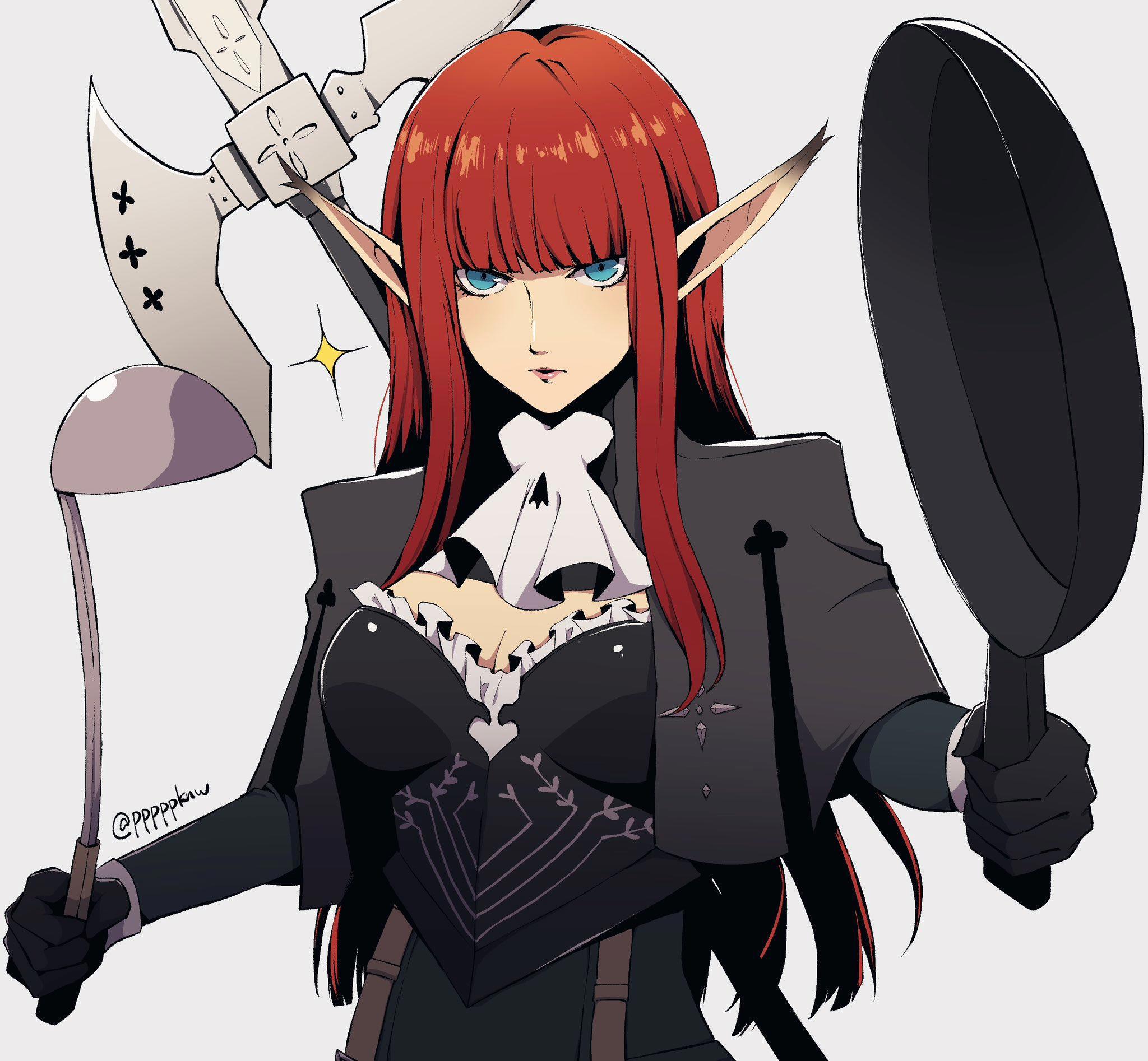 Автор: Руслан БирюшевЯ не особо интересовался очередной игрушкой во вселенной шинмегамитенсееев ("Metaphor" то есть). Но вы же не думали, надеюсь, что я просто так пройду не оглядываясь мимо рыжей эльфийки-рыцаря? Которую зовут ХЮЛЬКЕНБЕРГ? Которая была гвардейцем принца, не спасла его от покушения и с тех пор ходит мрачная в стильном чёрном костюме? Которая с виду каменно-непрошибаемая, но имеет чувство юмора и забавные замашки вроде любви к странной еде, от которой остальную команду героев дрожь пробирает? Короче, вот.