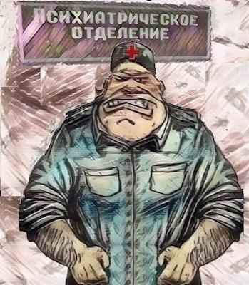 – Вызовем, обязательно вызовем! И задержим обязательно! – Главврач тем временем выглянул в коридор и махнул рукой бегущим на шум бойцам. Дюжий сержант тем временем с трудом с трудом удерживал разошедшегося майора. В приёмный покой ворвались два здоровых солдата, исполняющие обязанности санитаров и сходу ринулись в бой. Втроем им удалось свалить на пол и скрутить брыкающегося майора, продолжавшего орать – Это вы кого вызвали? Вы чо, угораете? Не надо меня брать! Настоящего алкаша ловите, придурки! Пустите суки!