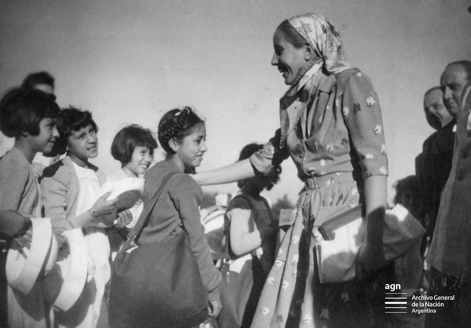 Аргентинская "первая леди" приветствует школьниц идущих в новую школу.