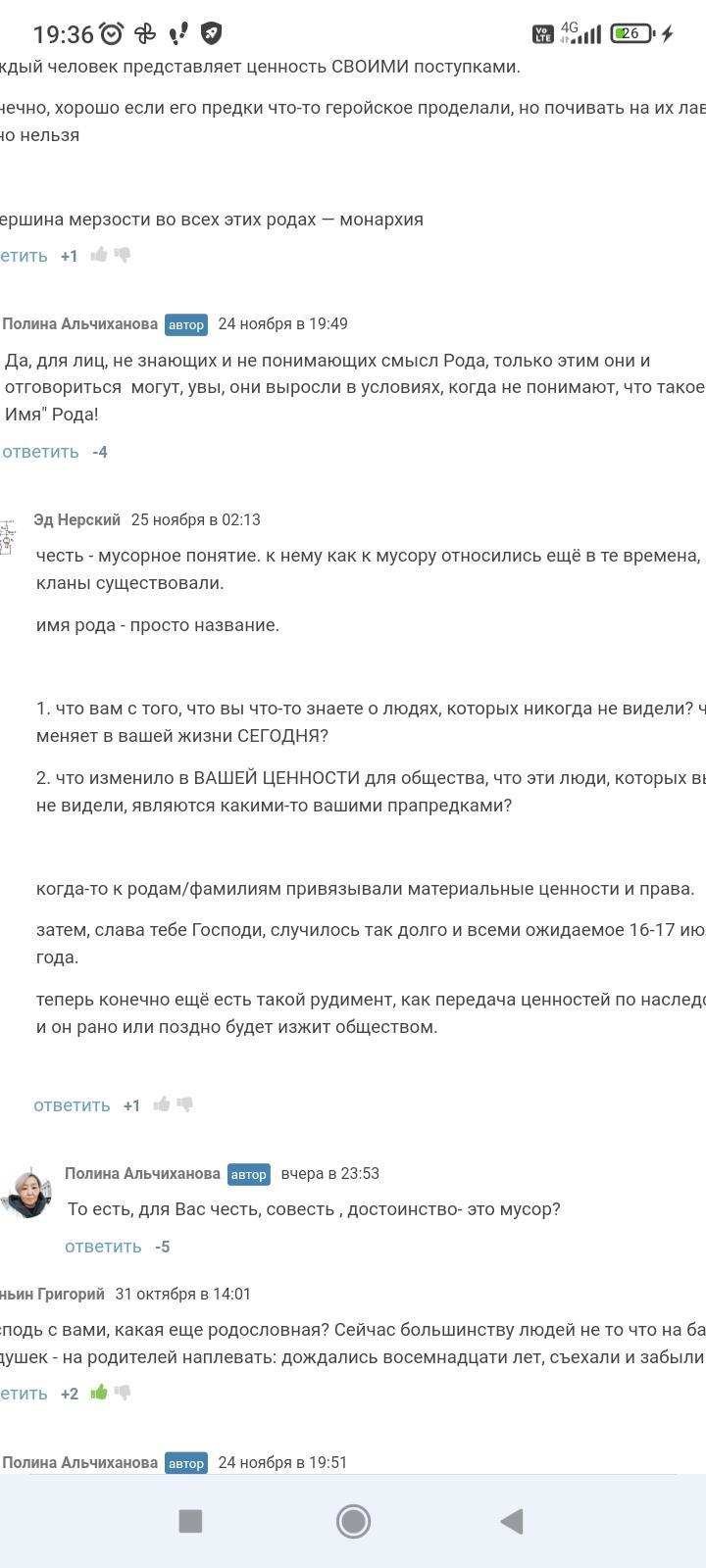 Жаль, что есть люди, которые не понимают в чем смысл Рода, Чести, Семьи и Достоинства, при этом некоторые комментаторы пишут книги и пытаются учить других