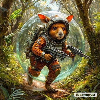 Рыжуха — космическое кенгуру. И ее питомец Горик (раздутый в зеленый шар). Помогает хозяйке быстрее бегать и защищает от выстрелов.