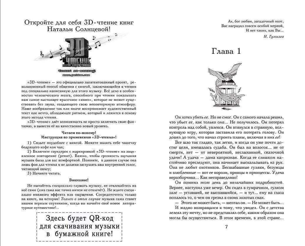 Каждый читатель, кто купит эту книгу, будет первым участником уникального эксперимента по «3D-чтению» и сможет прочувствовать на себе вибрации артефакта на стыке текста и музыки и перешагнуть в другую реальность... Получите больше эмоций и новых впечатлений!