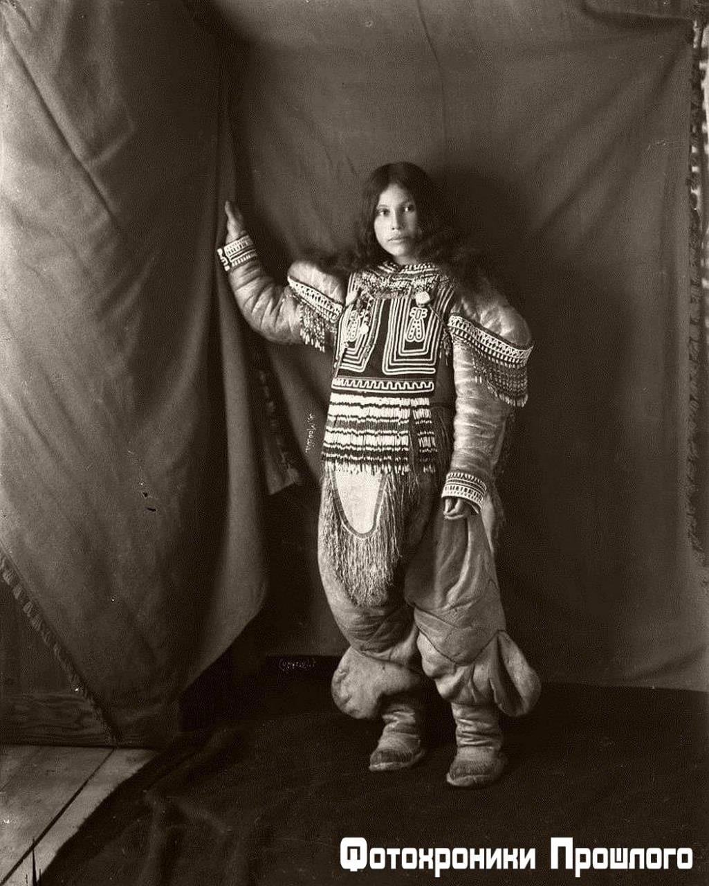 Такое вот эскимо. А под занавес, чтоб не занимать много воскресного времени поучениями - просто красивая эскимоска. В модной одежде.))) Как понимаю - часть штанов - это как бы футляр для ступней вместо домашних тапочек, чтобы по чуму не в сапогах маршировать.
