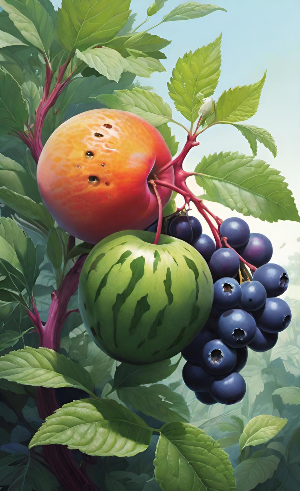 Несчастная питахайя побледнела настолько, что из пунцовой превратилась в тускло-розовую, а крупная спелая гуава безуспешно прикрывалась своим единственным листом в отчаянной попытке стать незаметной. Маленькие кожистые плоды личи и мохнатые рамбутаны сбились в кучку и мелко дрожали от страха. Перепуганный мангостин тихо плакал, роняя крупные капли сока.