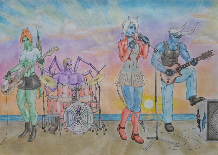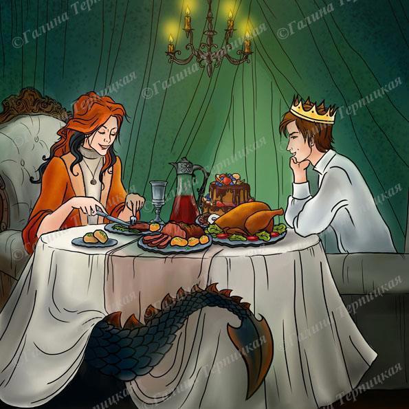 Я всего пару раз делал полноценные арты, затрагивающие произведениям других писателей. Первым был простенький кроссовер моего огненного демона с гоблиншей Лолкой (создатели персонажа: Тайва Фосса и Sango). Второй арт - конкурсная иллюстрация к циклу "Сорцерий" (автор: Саша Север).