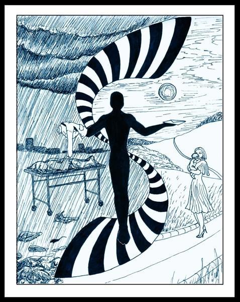 Обычно делаю два рисунка. Первый - простым карандашом. Довожу до нужного состояния и сканирую. В Paint'е (да, графическим редакторам я не обучен) чищу от всяких лишних штрихов и пятен. Ранние чёрно-белые версии из цикла демона после сканирования получались нечёткими (не уделял этому внимания), но сейчас стараюсь делать, чтобы всё отображалось без просветов.