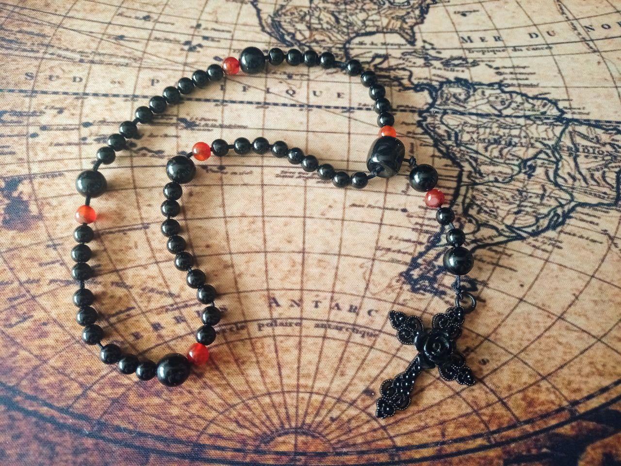 Если честно, я не знаю даже, из чего были сделаны первые четки Алисии. Они сразу задумывались для того, чтобы быть порванными, и чтобы их "реинкарнация" стала чем-то большим, нежели просто инструмент для молитвы, которого первое время после утраты Алисии очень не хватало. Во второй части, которой пока нет на сайте, Джон купит для нее четки из янтаря и агата. Агат, кроме прочего, его любимый камень.