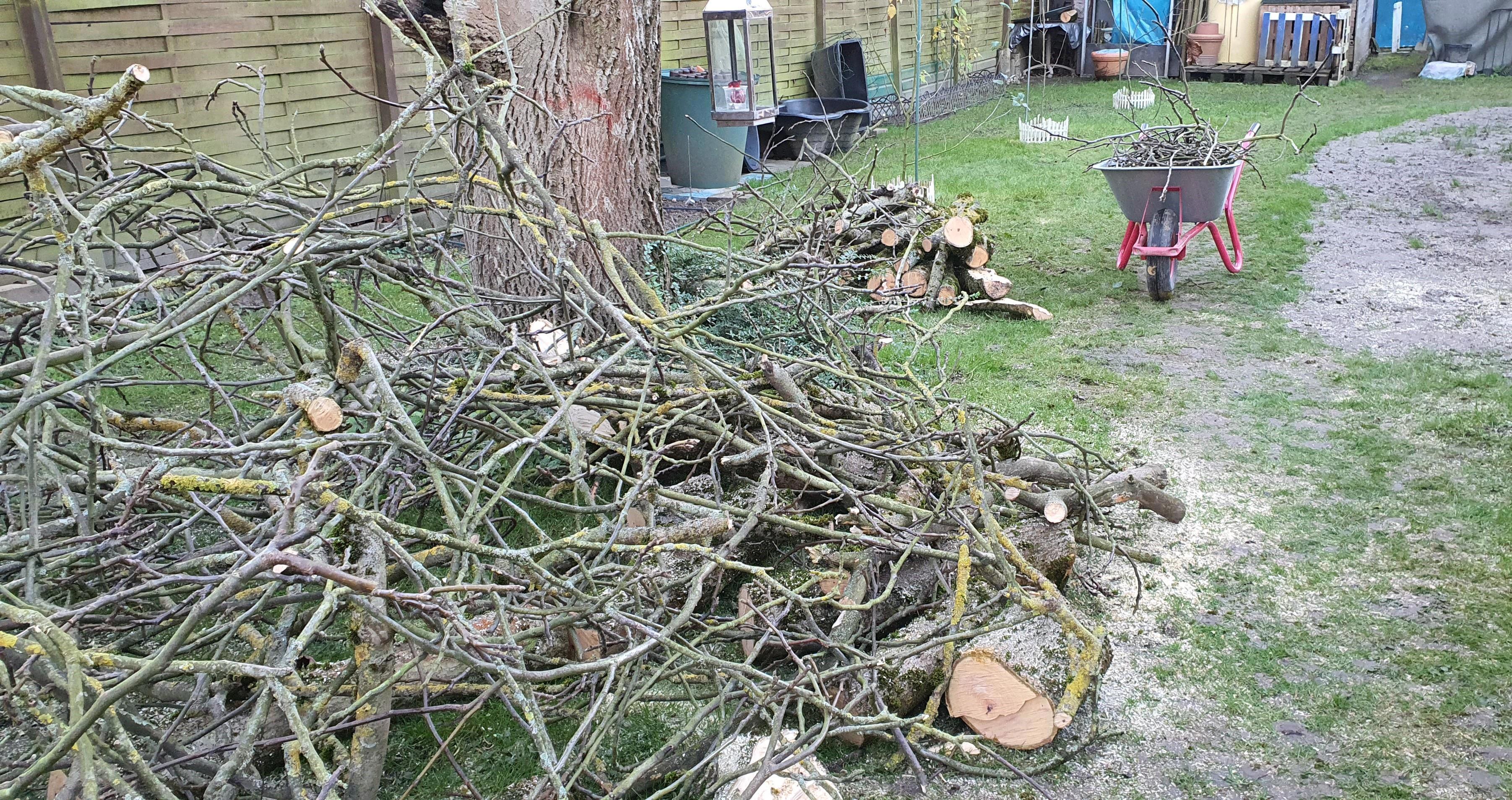 Пришла вчера в сад, а там милый, решил мне подарок сделать, спилил всё, что под пилу попалось.