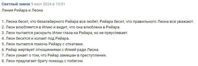 Последняя глава первой части с кучей правок от консультанта по психологии. Догадывались ли вы, что в первой редакции романа между Рийаром и Илией был бурный роман с поцелуями, а потом пришла консультант по психологии и сказала: в смысле? Он у тебя что, тупой? Как он это планирует потом назад отыгрывать? Он не должен заходить далеко, чтобы всегда иметь возможность сдать назад!