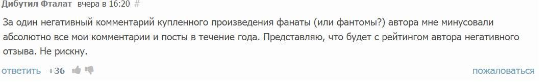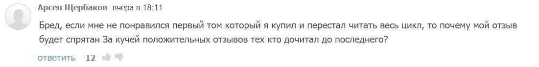 Только я напоминаю, покупка книги вам абсолютно не гарантирует наличие адекватного автора, который вас не зачсит в истерике, что вы посмели недостаточно похвалить его магмы попус