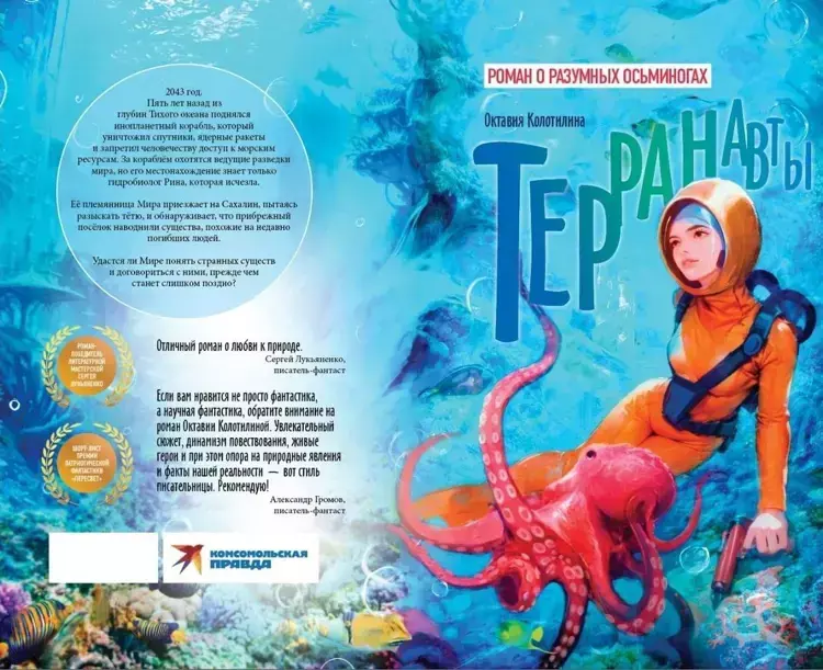 2. Многообразие тем, которые поднимает автор в книге – от проблем взросления до экологической катастрофы, которая ждёт всех нас, если мы не перестанем потребительски относиться к матушке-природе. Октавия Колотилина пишет о развитой цивилизации разумных осьминогов, которых мы, люди, настолько достали, что они выгнали нас из морей и океанов.