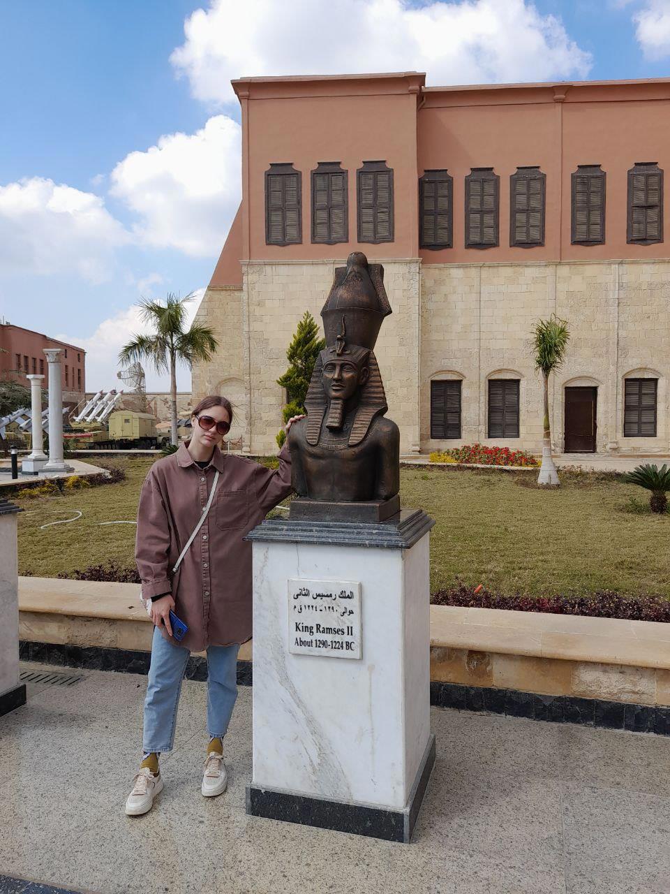Но совсем без фараонов рядом с главным военным музеем Египта, конечно, не обошлось... Вот он, герой битвы при Кадеше, победитель нубийцев, ливийцев, шерданов и немножечко хеттов:
