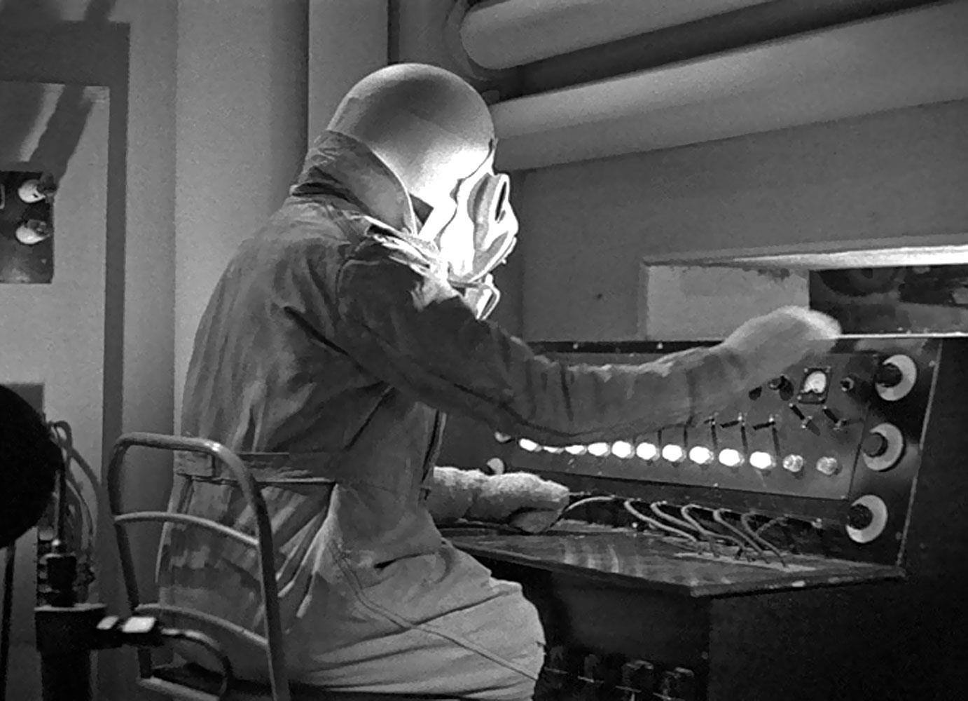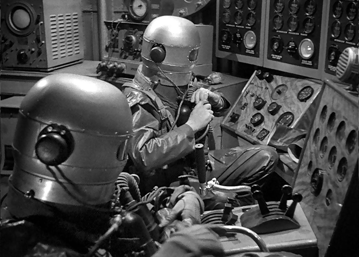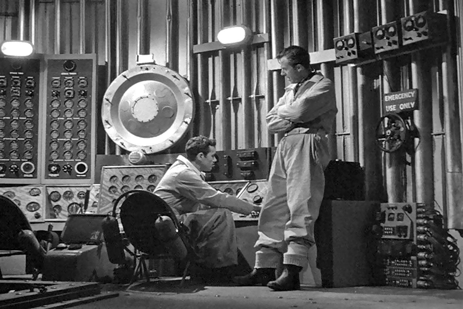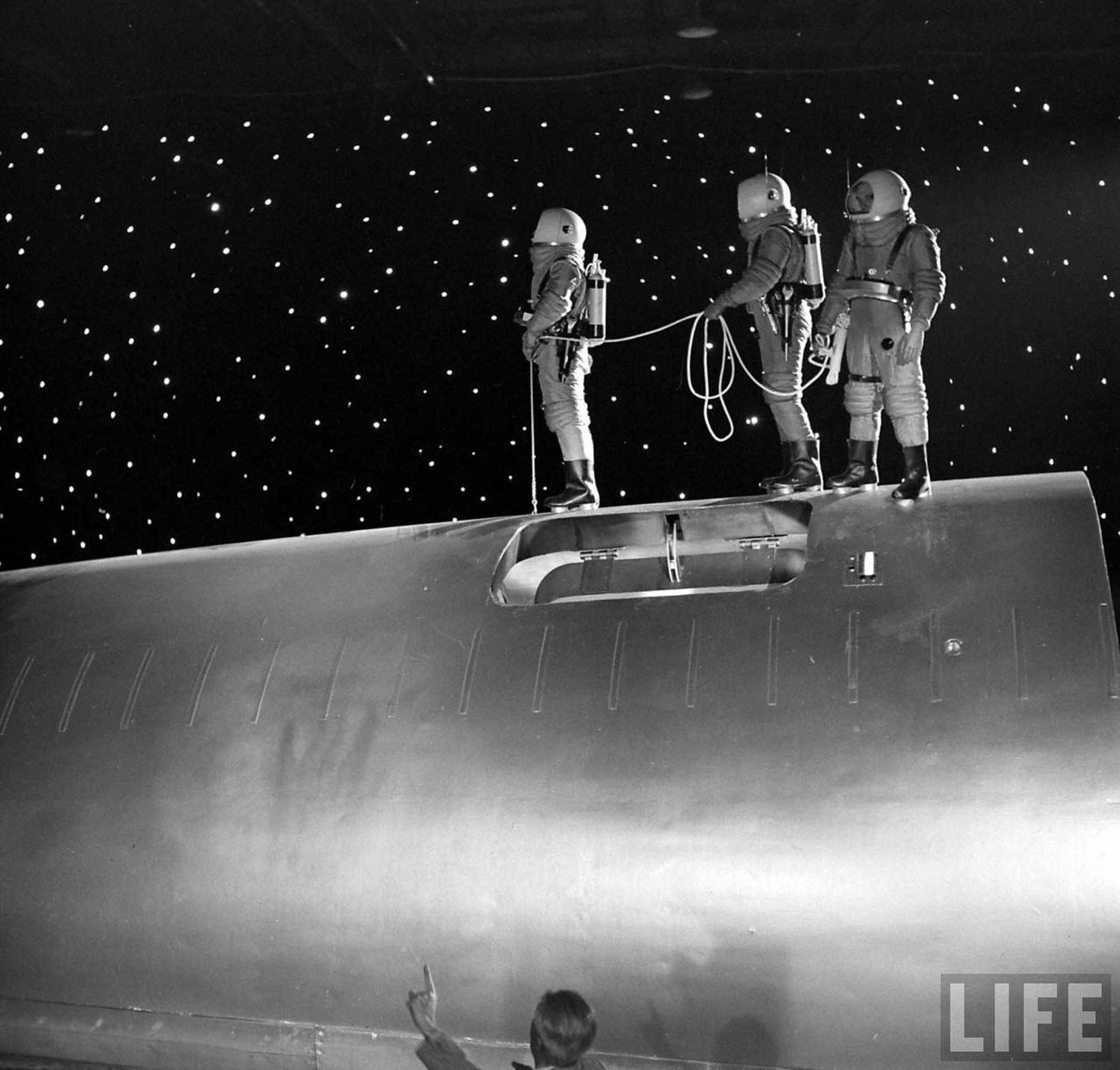 И еще кадры из фильма до начала космической эры. Как любили снимать тогда - пафосно и с просторными помещениями. Ракетопланы они такие - можно место не экономить