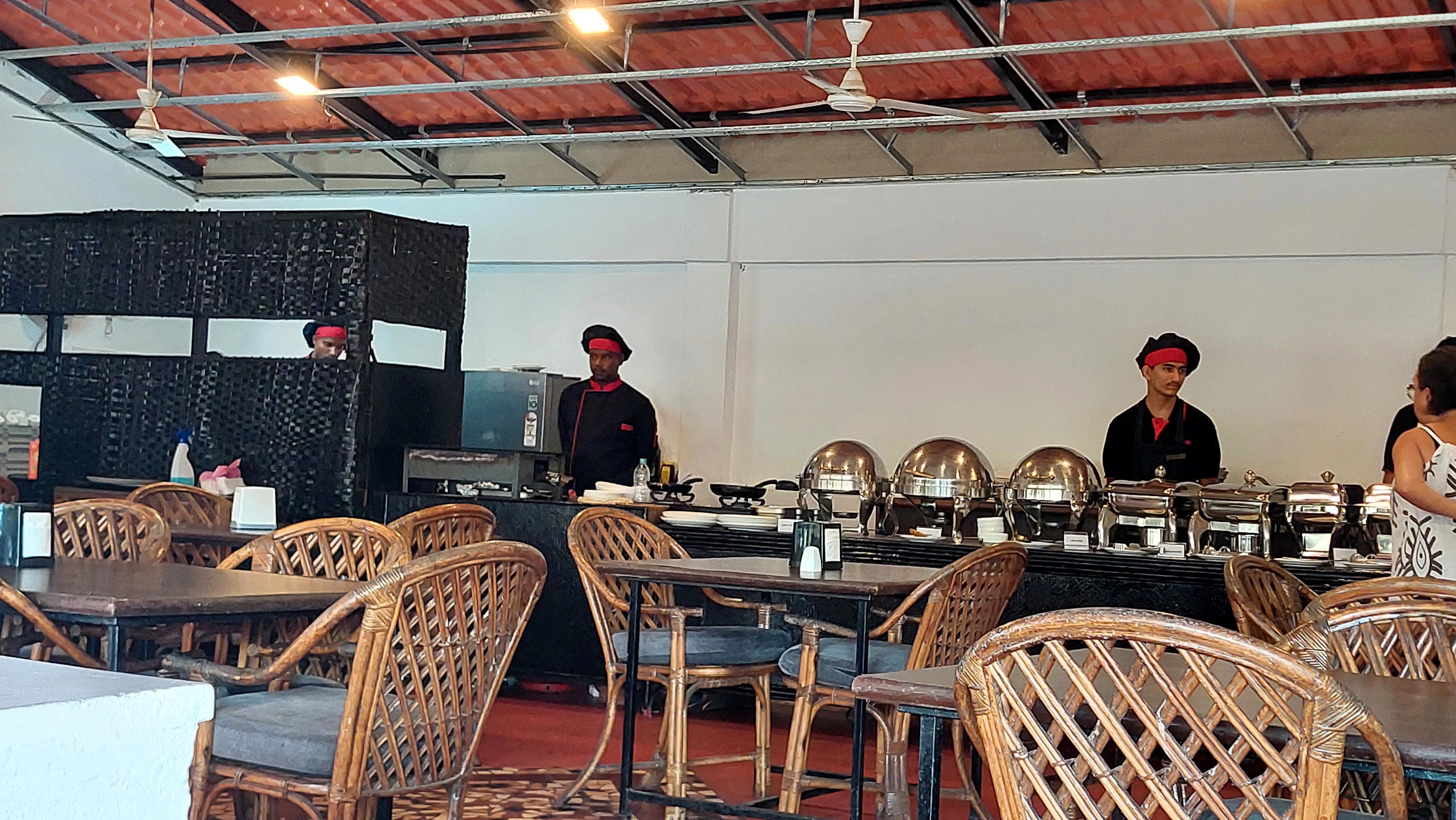 Индусы очень тёмные лицом, чуть ли не негры, :-), забавно. На завтраке