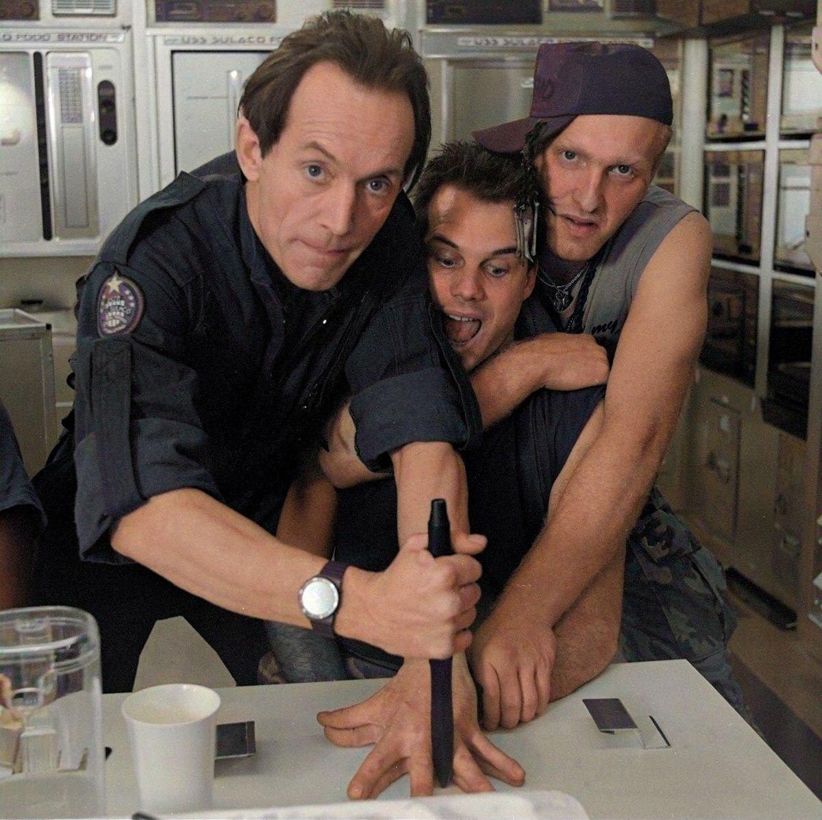 А потом в 1986 году были «Чужие-2» и принёсшая Хенриксену популярность роль андроида Бишопа. Сцена с ножом между прочим настоящая, Лэнс принёс её с флота. Он отлично умеет обращаться с ножом и в итоге эпизод лишь совсем немного ускорили.