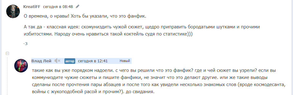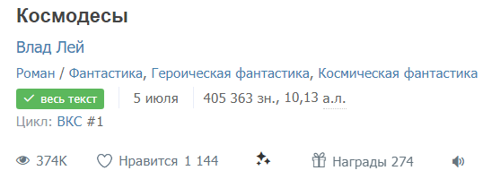 Автор: KreatiFFВ рамках личного социологического исследования одного популярного жанра случайно наткнулся на некоего забавного мальчика под псевдонимом - Влад Лей. А поскольку я сам неравнодушен и к боевой и и космической фантастике, то не удержался и заглянул вот сюда.