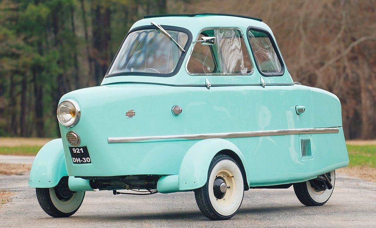 Это скромный трёхколёсник под именем «Inter 175A» серийно выпускали после войны не кто-нибудь, а производители самолётов - французская компания «S.N.C.A.N.». Однако он всё же довольно крупный. Куда меньше размерами английский трёхколёсник «Peel p50». Вот такой: