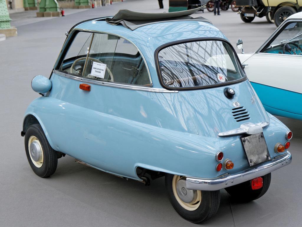 Единственная дверь у неё впереди. Из-за этого её иногда обзывали «холодильником на колёсах». А вообще-то у неё было жгучее южно-женское имя – Isetta. Или полностью BMW «Isetta». Ага – это детище того самого BMW. Хотя в общем-то не совсем его. Послевоенные дела у фирмы складывались «не очень», и они решили взяться за микроавтомобили. На них был хороший спрос. Своим проектированием решили не заморачиваться (время дороже), а купили проект у одной не самой крупной итальянской компании. Понятно, что его немного доработали, но имя сохранили. В различных вариантах их построили в количестве что-то около 150 тысяч штук.