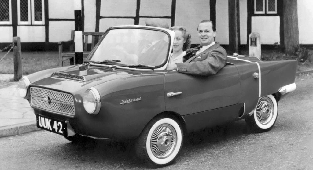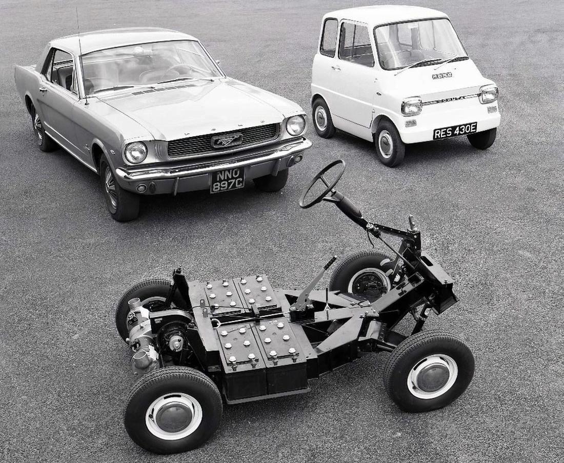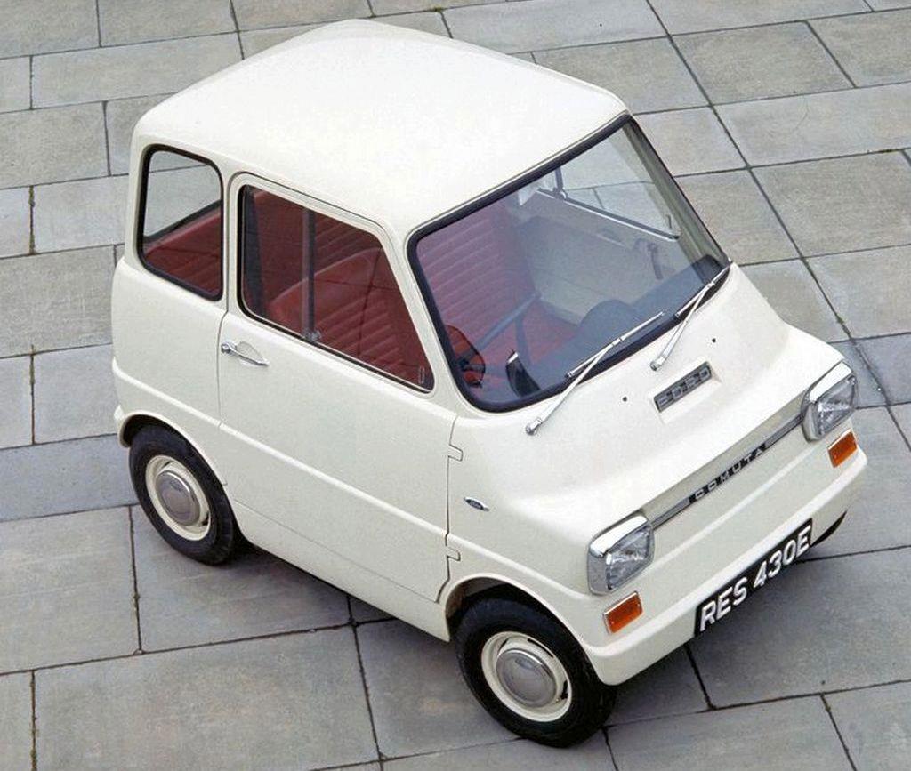 Вроде бы и не скажешь, но это таки модель Форда. Да – это Ford «Comuta» образца 1967 года. Нет, дело не в том, что война закончилась… это время того самого грозного топливного кризиса, который сэшэашники поминают до сих пор. Именно из-за него тогда сэшэашники временно полюбили маленькие экономичные машинки. Хотя возможно причина появления этой маленькой машинки у большой фирмы другая. Дело в том, что «Comuta» – это на самом деле электромобиль. Вот он на семейном фото «без одежды»: