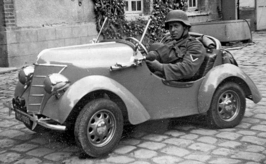 Одноцилиндровый двигатель водяного охлаждения, установленный сзади разгонял его через цепную передачу до 64 км в час. Причём машинки эти выпускались достаточно долго и в различных вариантах. Вот парочка таких уже выпуска 30-х годов: