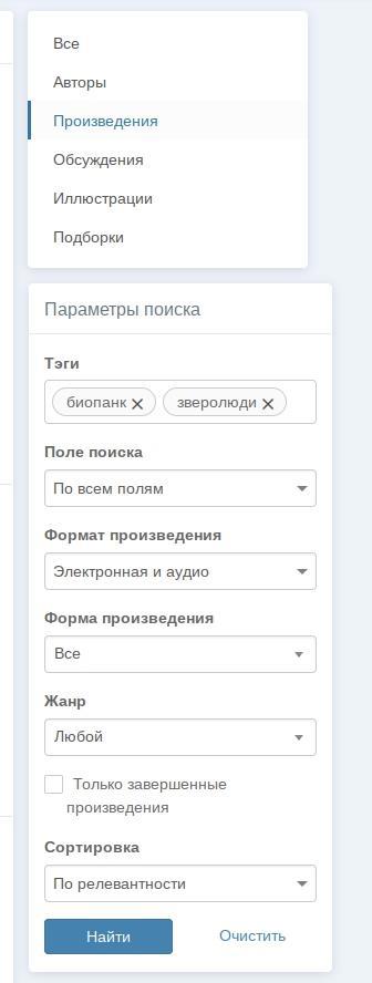 Вишенка на этом всём то, что в этом поиске не работает ни исключение жанров, ни "первый том в серии", ни все остальные фильтры. Сортировка по популярности там тоже не работает, если что: набираем в поиске "кодекс" и видим книгу с 10 лайков, как самую популярную. Потом книга с 27 лайков, потом с 10 лайками... Не удивлюсь если результат ещё зависит от погоды и времени суток.