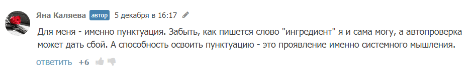 Нужно отметить, что она меня раздражает. Не только и не сколько в эмоциональном плане, хотя это тоже, но тут, скорее, биологическое значение слова "раздражает", когда обязательно нужно выдать на раздражитель реакцию. Сложно описать. Вот представьте: сидит собачка за забором и не может удержаться, чтобы не гавкнуть на прохожих, хотя и прохожие ей по большому счёту безразличны, да и гавкать особого смысла нет. Примерно так себя и чувствую.