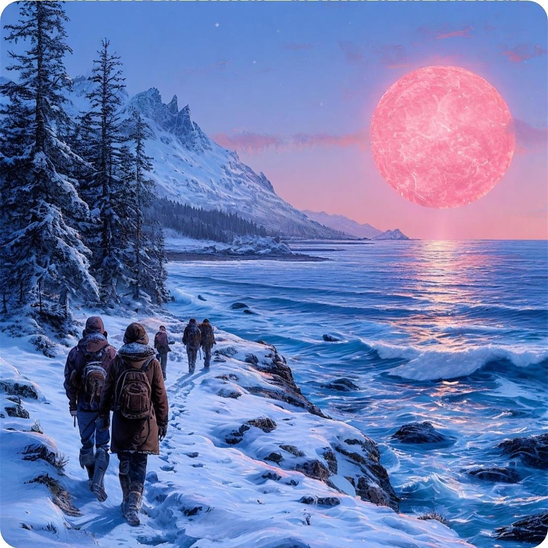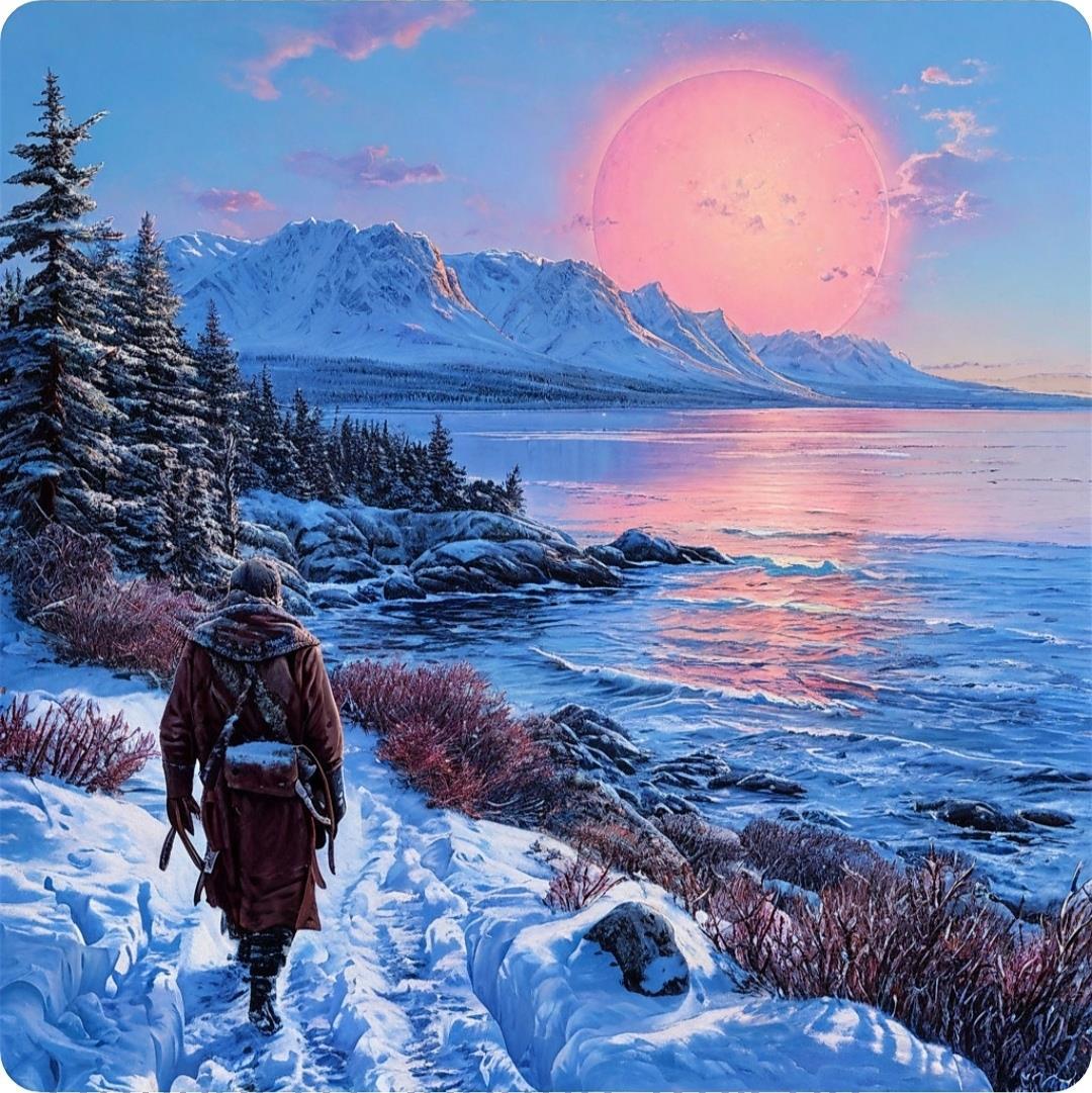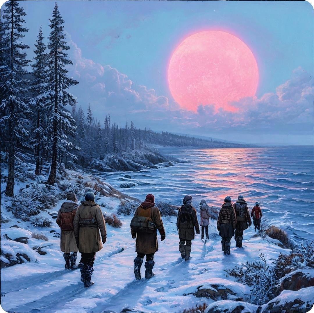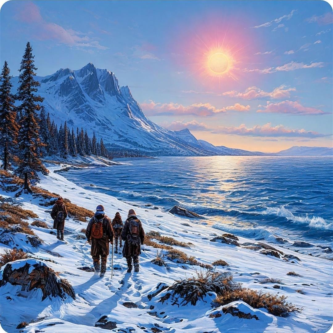 Автор: Terra-21Заказывал нейросети иллюстрации к статье о главе 21 "Таинственного острова" Жюля Верна, это там где колонисты в морозную зимнюю пору 5 июля 1865 года отправляются на охоту в район мыса Когтя..