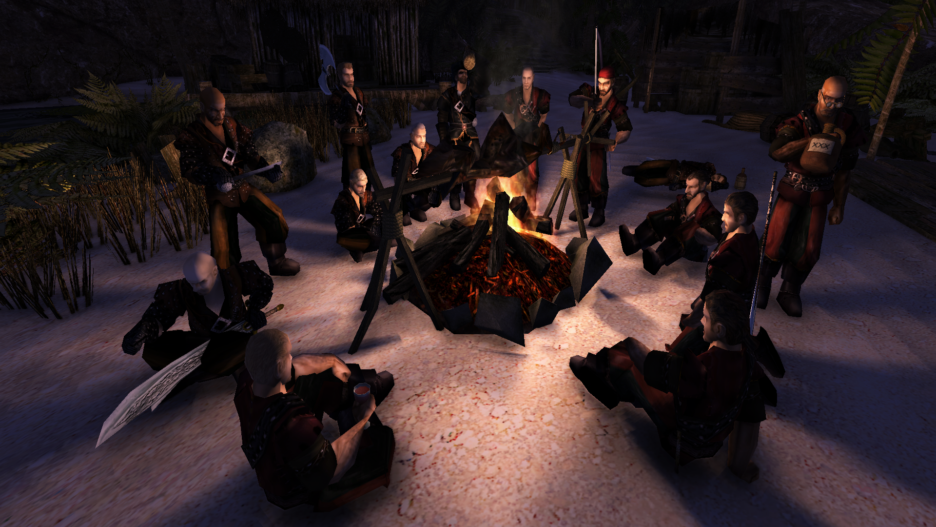 Остальные пираты из шайки Грега (которого они между собой иногда уважительно называли «капитан Грог»), толпились возле выстроенной на высоком помосте хижины. Некоторые уже начинали проявлять нетерпение и ёжиться под порывами западного ветра, который нёс с моря стылую сырость.