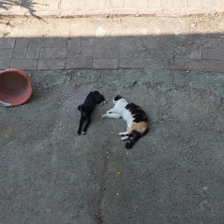Так что псинки - на попечении Маськи. Они уже спят как кошки. И поведение демонстрируют очень кошачье.