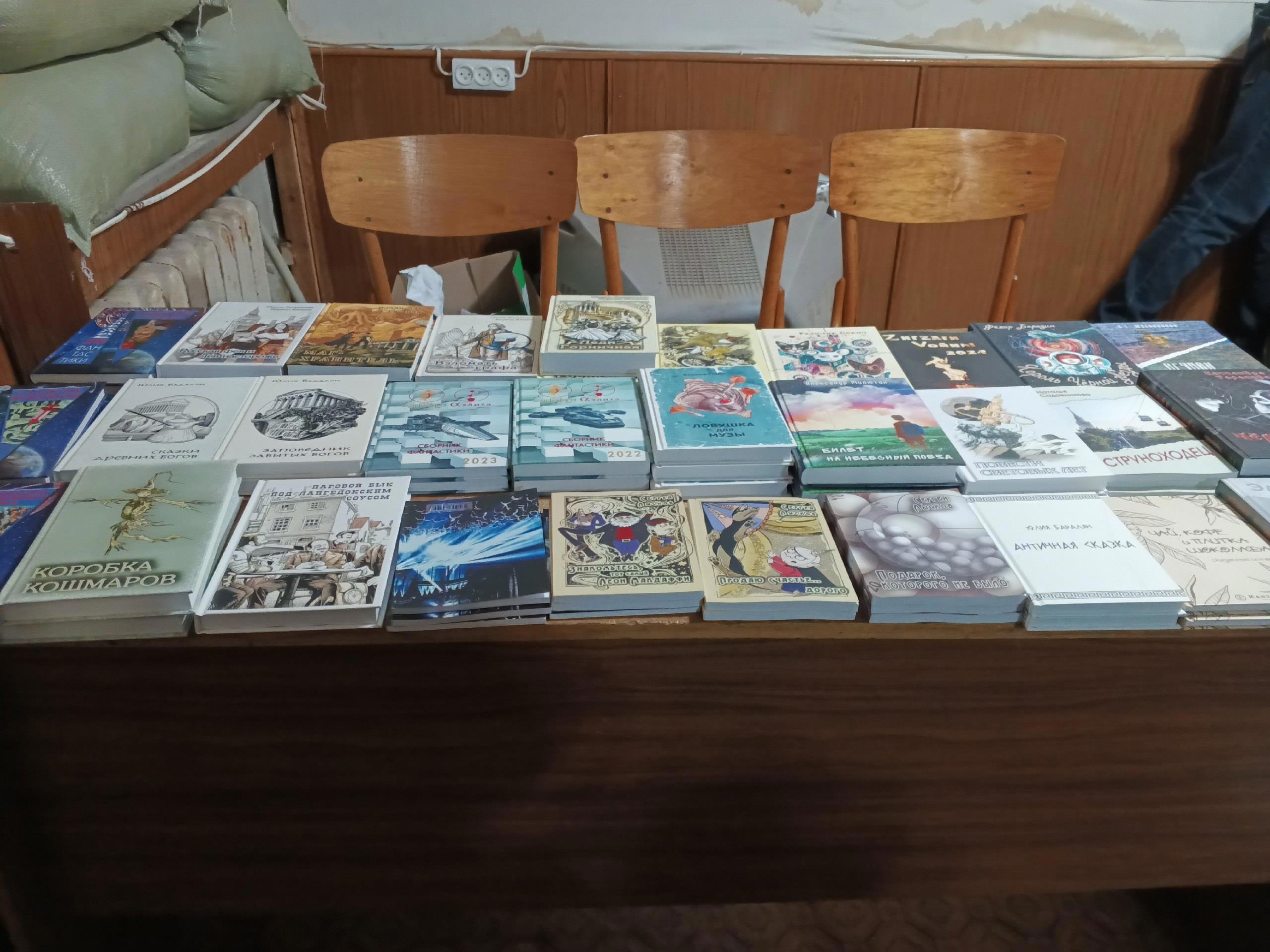 А первыми, с криком: "ОООО!!! Ужастики!", схватили "Коробку кошмаров" и "Чёрную Гронью" Тарасовой. А вторыми похватали остальные сборники издательства и сборники нашего клуба фантастов и всю серию Лыскова, а так же Владимира Васильева "Рокомотив", когда показали им куаркод для возможности прослушать музыку группы, в которой играл Васильев, парни оживились и начали устанавливать очередь.