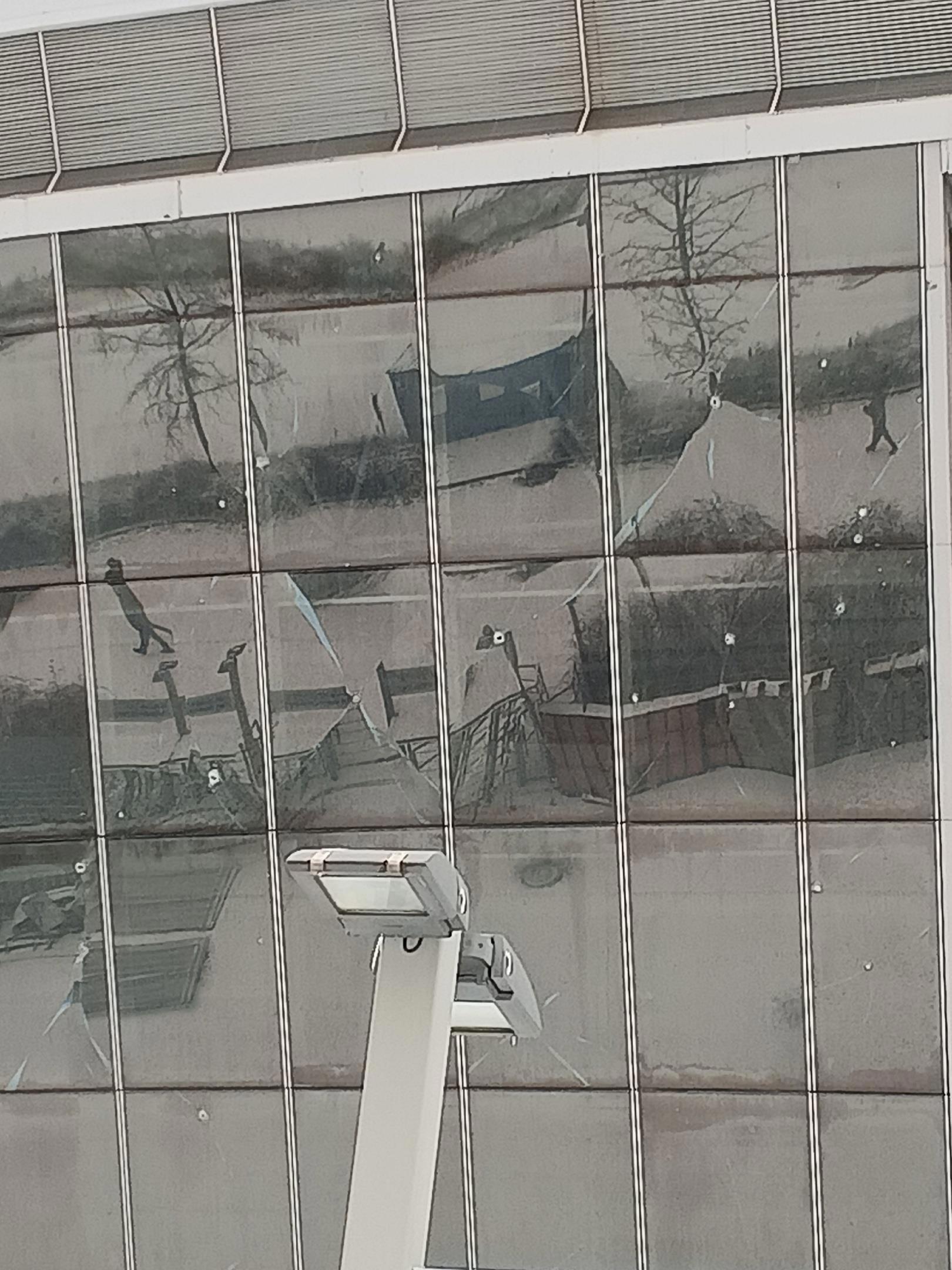 Или стадион Донбасс-арена. Красивый, издалека совсем не пострадавший. А подходишь.