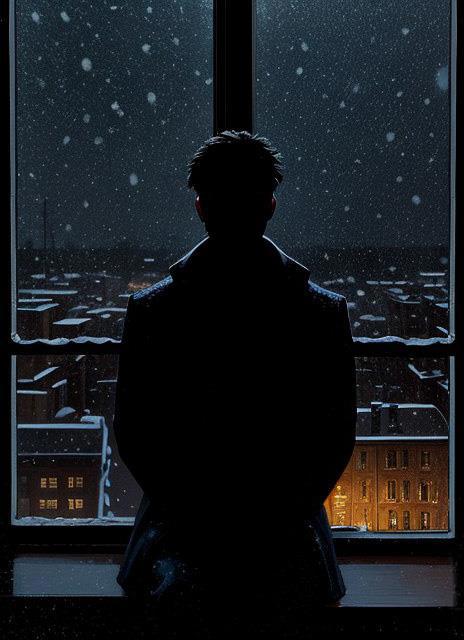 С высоты шестого этажа в комнатку пробивался тусклый свет уличного освещения, витрин и подсветки. Желтоватые фонари, светившие на дорогу и остановку под самыми окнами, искрили снежинками и утопали в стылом ночном безмолвии. Под причудливой вышивкой теней, от окружавших дом деревьев, иногда проносились спешащие из ниоткуда в никуда машины. В учреждении напротив сторож начал свой регулярный обход здания, поблескивая фонарем из внутренних помещений. Хлопья кружились медленно, величественно, укрывая сонный Город, словно пеплом. Они падали из бездонной сероватой массы, распростершейся над Городом тяжелыми равными клоками, в небольшие просветы которых иногда смущённо выглядывала луна.