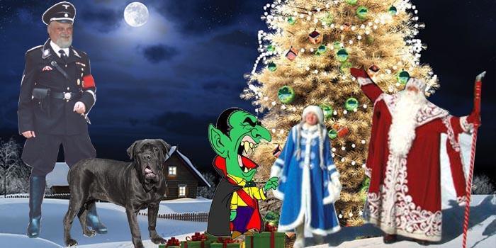 И вот, данный пират, возомнив себя Станиславским и комендантом общаги одновременно, стал пытаться наводить порядок, в том числе, и в инсценировках в частности, и в карнавале вощще, что естественно раздражало ряд окружающих, включая и меня. Причем свою суету, данный флибустьер аргументировал тем, что был в армии сержантом. Когда же я в спокойно-шутливой форме, попросил его сбавить инициативу (мол, ты что мешаешь отдыхать придурок, вдобавок ты тут далеко не самый старший по званию), этот корсар начал сыпать наиболее идиотскими шутками и анекдотами про Штирлица. Я естественно в долгу не остался и сказал что наконец понял, зачем моему оппоненту деревянная нога... А когда у видел на лицах присутствующих интерес, то продолжил следующим... Мол деревянная нога у господина пирата нужна для того, чтобы все окружающие поняли что фраза - "Что же еще надо оторвать человеку что бы он перестал быть Унтерофицером" - сказана исключительно про него. Все засмеялись, унтер увял, а нам с Кайзером стало скучно и мы пошли покурить на крыльцо. Была чудесная Новогодняя ночь, все кругом было красиво и я даже под настроение выключил свет на крыльце. И вдруг рев мотора нарушил сказку. К калитке подъехало такси и от туда вылезли Дед Мороз и Снегурочка. Сверившись с номером дома, они отважно вошли в незапертую калитку и увидев наши с Кайзером силуэты, неуверенно спросили, не дом ли это Господ Р. На что, я ответил утвердительно... и включил свет... Дед Мороз и Снегурочка, увидев на крыльце огромного Эсэсовца (рост 185, размер 66) с не менее огромной черной собакой остолбенели и тихонечко стали пятится назад к калитке. Я, находясь в тренде, был вынужден рявкнуть "цурюк" и потребовать "папир". На Деда Мороза сразу напала икота, а Снегурочка плаксиво заявила, что они с Украины и у них нет регистрации. Я окончательно войдя в роль спросил не партизанен ли они... Надо еще заметить, что в процессе беседы, бедные актеры называли меня исключительно пан фашист. А тут подоспела пора вступить Кайзеру. Верный и гордый Хунд, обратил внимание на то, что разговор идет во всю, а про его красоту ни слова. И этот небольшой песик (чуть меньше метра в холке) легонько тявкнул, мол а почему нас никто не восхваляет. Снегурочка в очередной раз остолбенела, Дед Мороз опять начал пятится к калитке, и тут из дверей повалили гости, увидевшие в окно Деда Мороза со Снегуркой, а гости , если вы помните, были в костюмах ведьм, чертей и вампиров, а впереди бежал хозяин дома в костюме Графа Дракулы (с вооот такими зубами)... Дед Мороз бросился к калитке и Кайзер, без команды мощной черной стрелой мелькнул за ним, поняв что это как минимум нарушитель, а может даже и вкусная коза (что мы знаем о мыслях животных). Пока Кайзер рычал, над залегшим в сугробе Дедом Морозом, наш любитель порядка сержант-пират, бросился спасать сказочного старика, но поскользнулся на своем псевдопротезе и упал. Взъярившись, он отстегнул деревянную ногу и отбросил ее в сторону. Уведя этот акт саморасчленения, Снегурочка тоже рухнула в спасительный обморок. Потом все конечно разъяснилось, актеров ввели в дом, напоили, накормили и еще раз напоили, но одно было неизменным. Кайзер следил за подозрительным стариком в красной шубе, а оный старик с бородой из ваты, старался по мере возможности, быть от меня на противоположном конце комнаты.