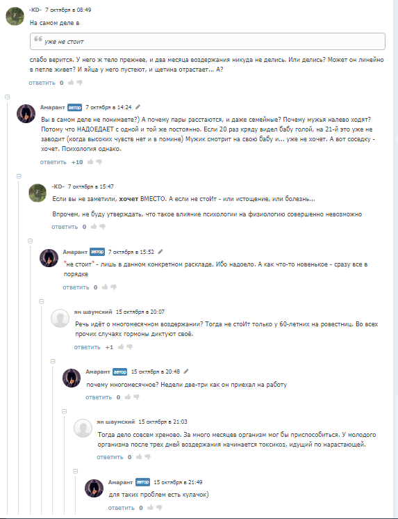 И всё бы ничего, но я ещё и комментарии почитал. А там, мать его, разверзлись хляби небесные и начался биопроблемный тред про полшестого, инцелибат, дрочку и прочие актуальные проблемы современности: