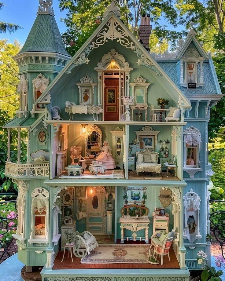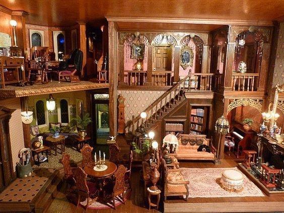 А в центре комнаты на столе стоял огромный кукольный домик в три этажа. Уж он-то был освещен как следует. Ярко сияла огнями гостиная, в которой за роялем сидела кукла в бордовом платье, а еще две игрушечные дамы сидели в миниатюрных креслах и как будто о чем-то переговаривались. В спальне не третьем этаже еще одна кукла спала на кровати под шелковым балдахином. В крошечной кухне сияли медные сковородки, а в очаге плясал иллюзорный огонь. Была тут и библиотека, и картинная галерея…