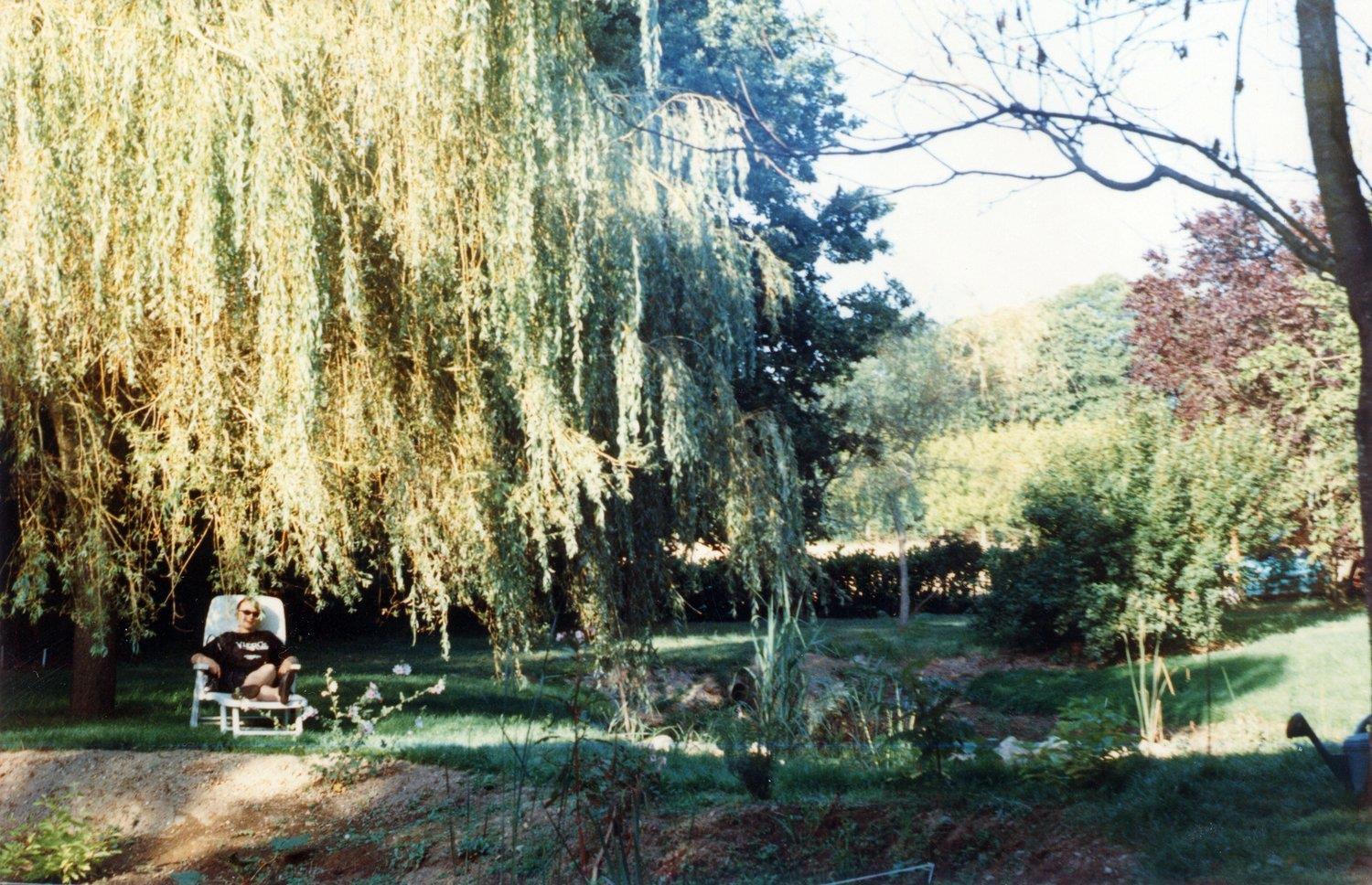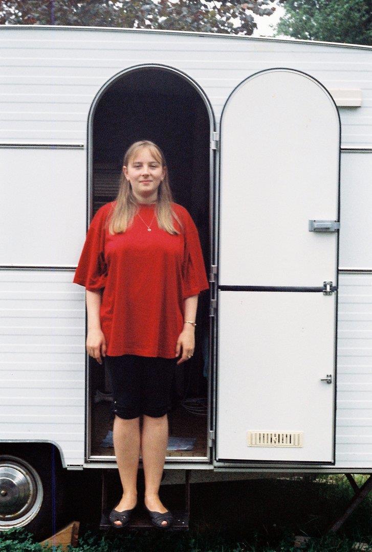 Там нас, троих девочек (кузину, немку и меня) поселили в трейлере в саду (тут фотки сохранилась), довольно немаленьком, там даже пруд с золотыми рыбками был:
