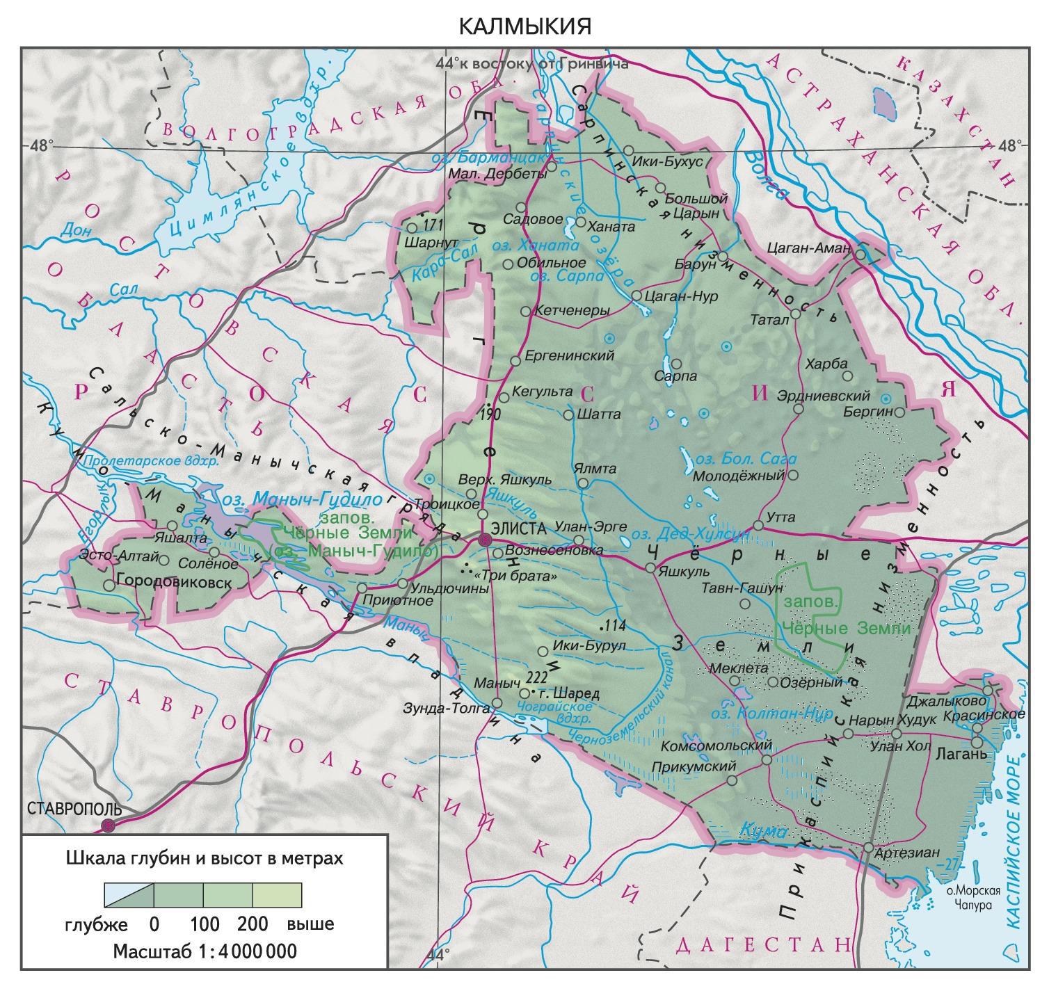 Я напомню, что сейчас Калмыкия выглядит немного меньше, но всё равно, перерезает Волгу в одном месте.