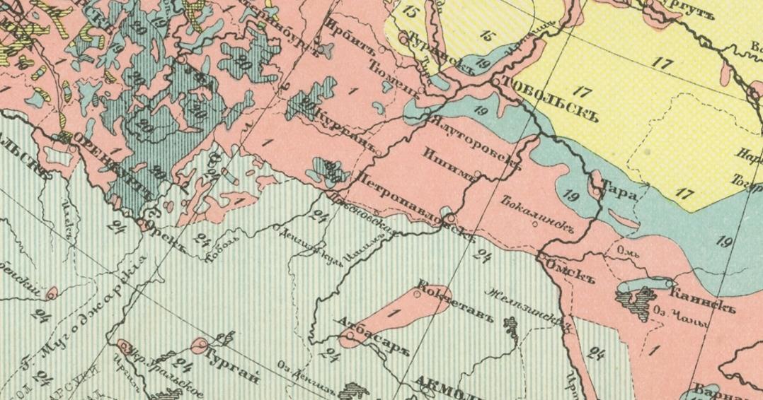 На ней мы видим, что Петропавловск находится в русской зоне. Тогда каким образом казахам достались земли севернее Петропавловска?