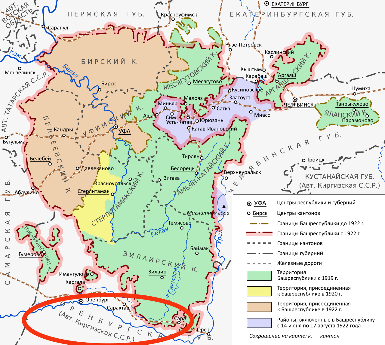Изначально, большевики накроили Россию так что Казахстан и Башкирия имели общую границу.