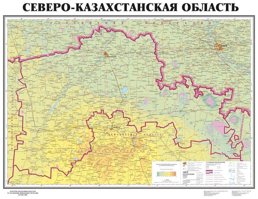 На этой карте вы видите, что на севере Казахстана находится русский город Петропавловск: