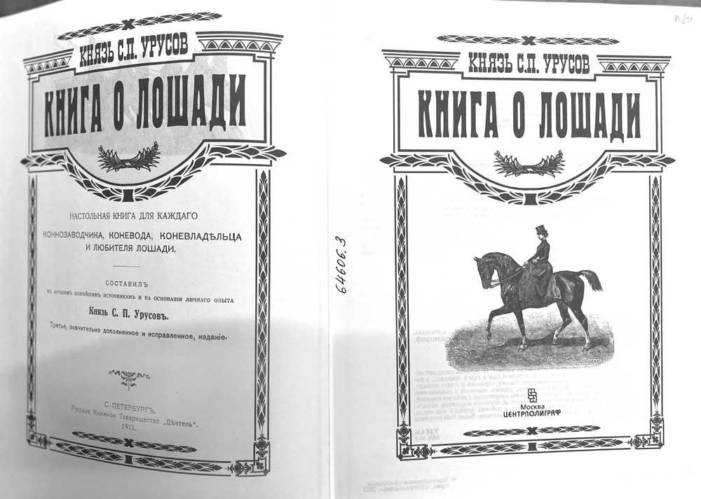 Осуществил перевод князь Сергей Урусов с немецкого издания «Книги о лошади».