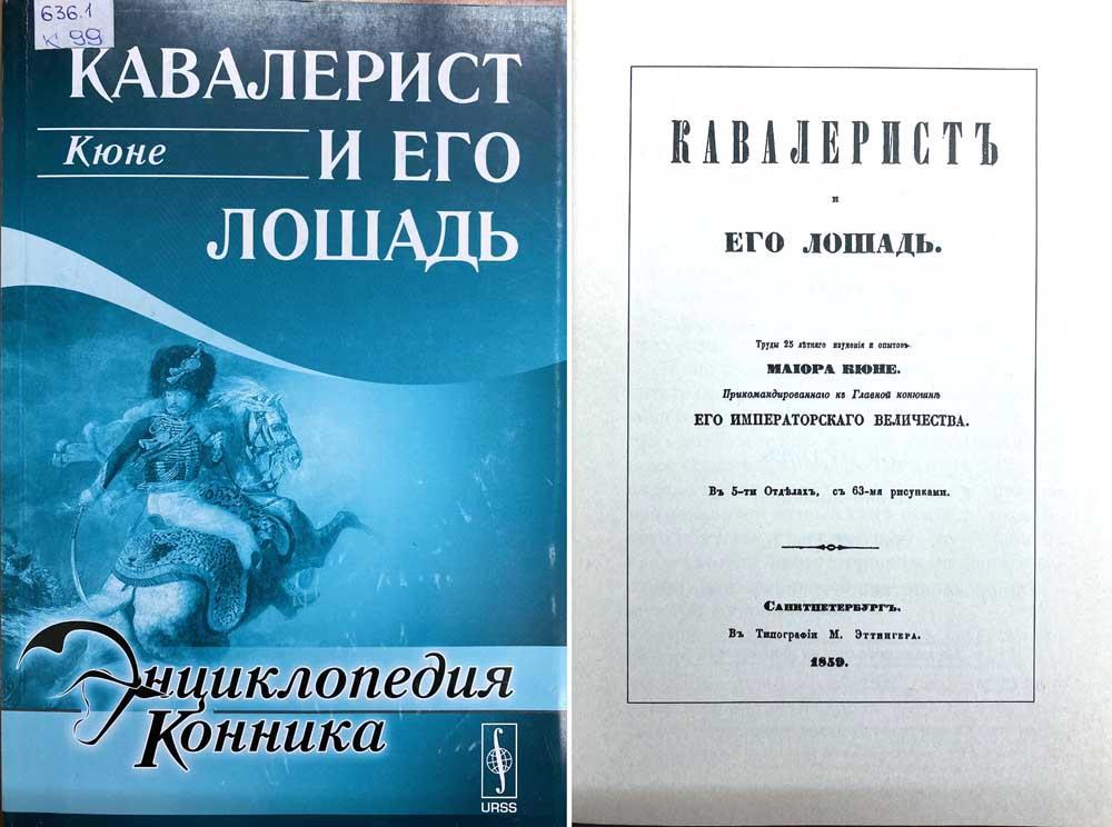 Признаюсь сразу, информации о Кюне я не нашла, кроме сведений с титульного листа. Автор книги «Кавалерист и его лошадь» был прикомандирован к главной конюшне его императорского величества. Поскольку не указывается, какой это император, то подразумевается, что речь идет о Российском императоре. Первое издание труда майора состоялось в 1859 году в Санкт-Петербурге. А в наше время книга была переиздана.