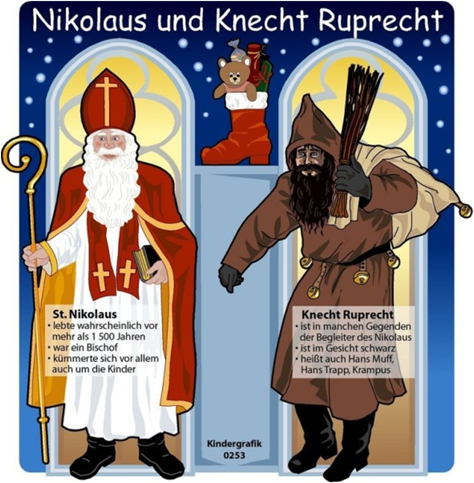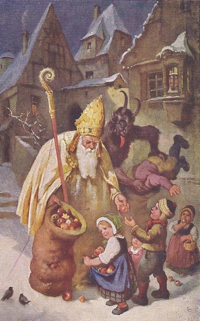 Правда, поначалу эти подарки отнюдь не были дармовыми; их еще нужно было заслужить хорошим поведением. А если ребенок вел себя плохо целый год, то на такой случай св. Николай водил с собой разных спутников (кнехт Рупрехт, Крампус), которые наказывали плохих детей.