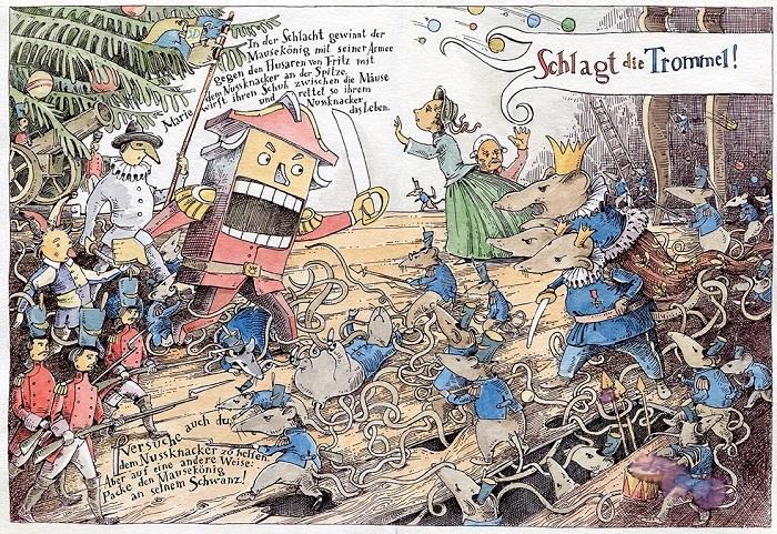 Оказывается, согласно передовой военной мысли тех лет Гофман «очень хорошо изобразил грандиозное сражение, убедительно обосновав поражение Щелкунчика завоеванием батареи, неудачно расположенной у матушкиной скамеечки для ног».