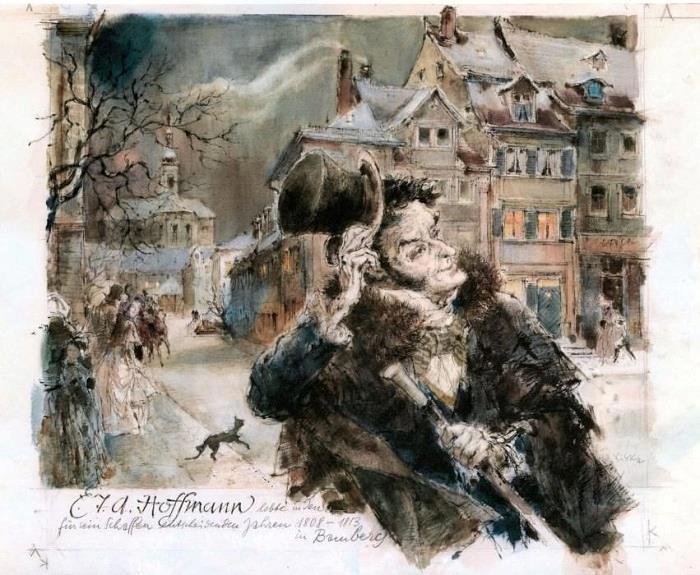 Да, чуть не забыл. Мужчину звали Эрнст Теодор Амадей Гофман. Верне, сначала его звали Эрнст Теодор Вильгельм Гофман, но из-за преклонения перед Моцартом на пороге "тридцатника" он сменил свое третье имя «Вильгельм» на «Амадей».